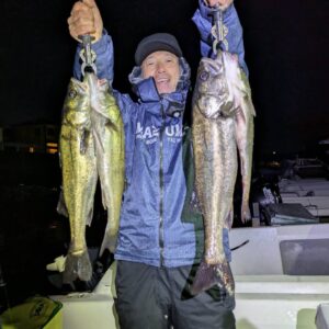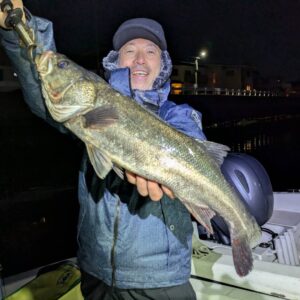 冬は夜釣りです。チビチビのセイゴも沢山釣れましたが、大きめのサイズも釣れました。