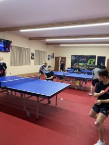 今回は2リーグ制にしてシングルスの試合を7試合行い最後はダブルスを行いました。